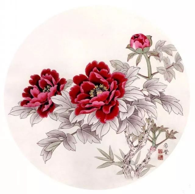 工笔扇面牡丹画法